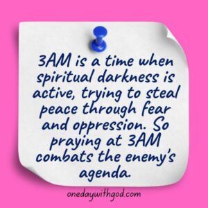 3AM is a time when spiritual darkness is active, trying to steal peace through fear and oppression. So praying at 3AM combats the enemy’s agenda.