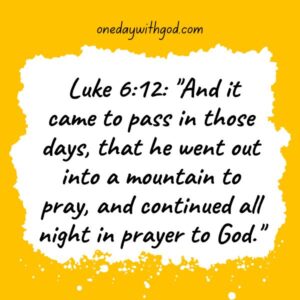 “And it came to pass in those days, that he went out into a mountain to pray, and continued all night in prayer to God.” (Luke 6:12)