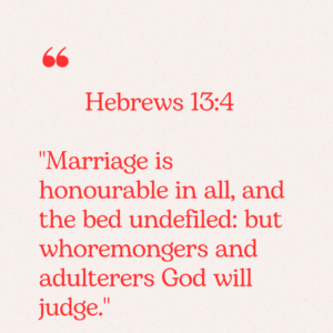 Hebrews 13:4 – “Marriage is honourable in all, and the bed undefiled: but whoremongers and adulterers God will judge.”